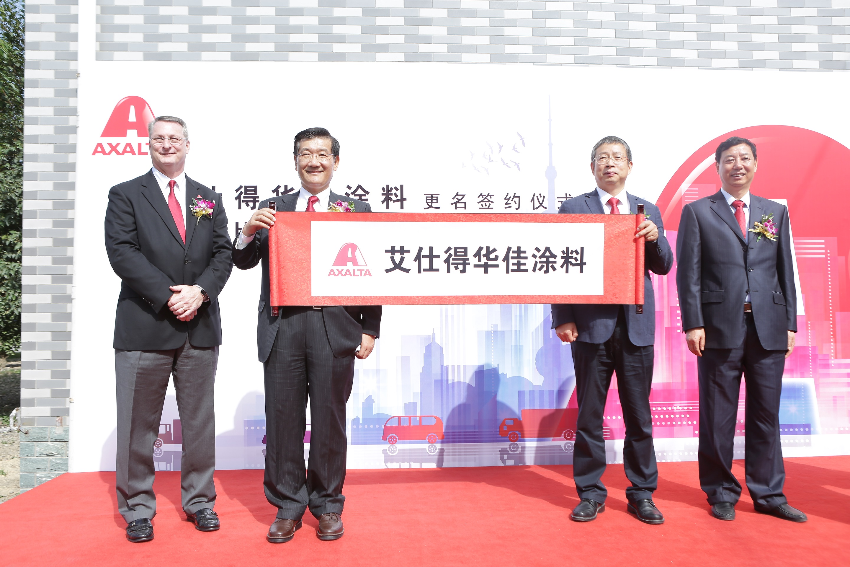 (从左至右)艾仕得高级副总裁兼全球工业涂料业务总裁马凯士先生、艾仕得中国区总裁陆克坚先生、艾仕得华佳涂料总经理孙毅先生和永佳集团董事长江继忠先生共同为艾仕得华佳涂料的发展揭开新的篇章